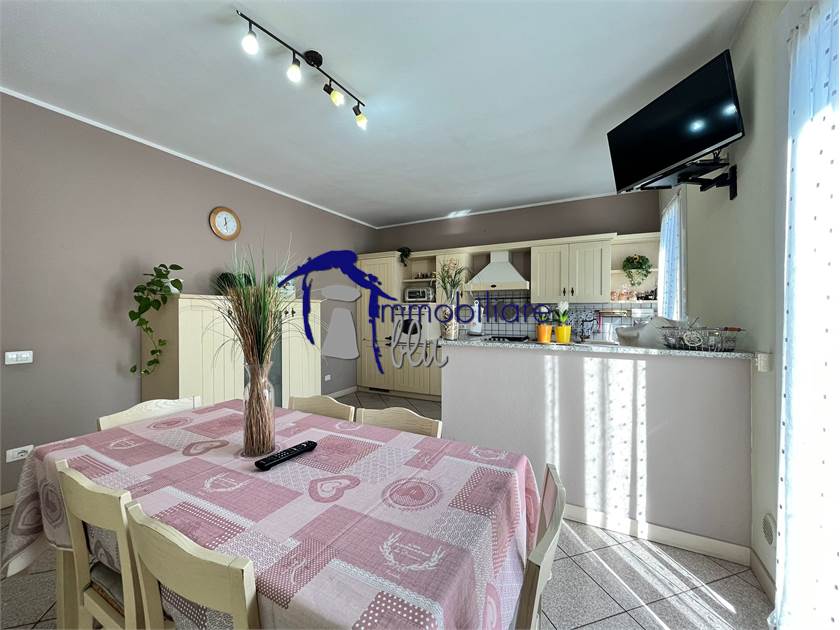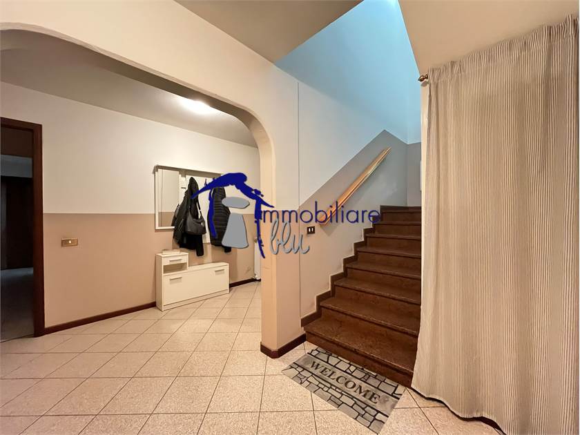 In zona residenziale verde e tranquilla disponiamo di Casa Abbinata tipica degli anni 90 composta al piano terra da ingresso, Bagno - Lavanderia, Cantina (Tavernetta) e n.2 Autorimesse distinte, al primo piano da Appartamento di 150 mq composto da ingresso, Salone con camino, Cucina abitabile con balcone, disimpegno, 3 Camere da letto, 2 Bagni e Mansardina collegata utilizzabile come studio o altro.